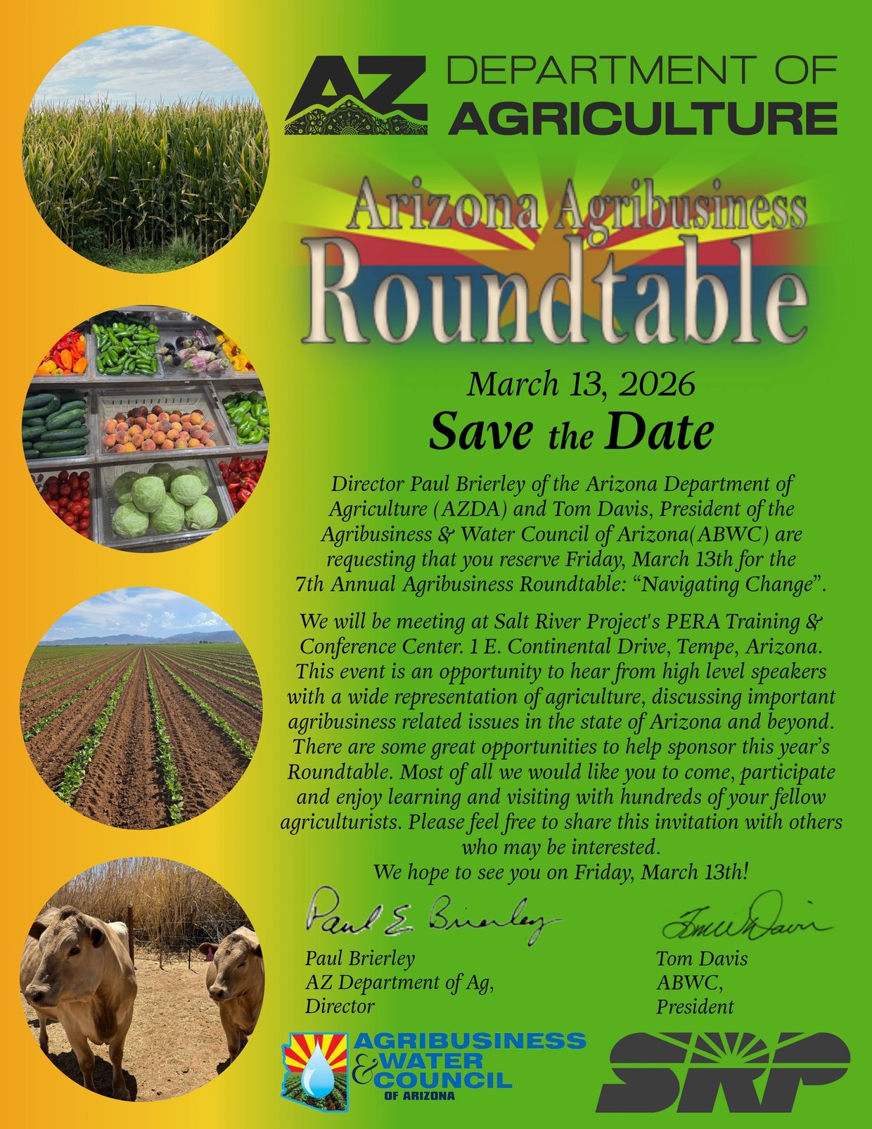 This event is an opportunity to meet as leaders and colleagues to discuss important agribusiness related issues in the state of Arizona and beyond.
