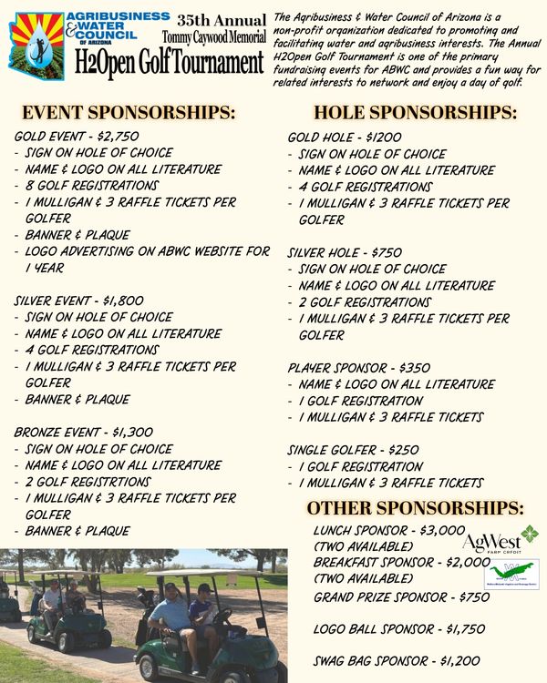 Join us for the 35th Annual Tommy Caywood Memorial H2Open Golf Tournament for a fun day of golf!