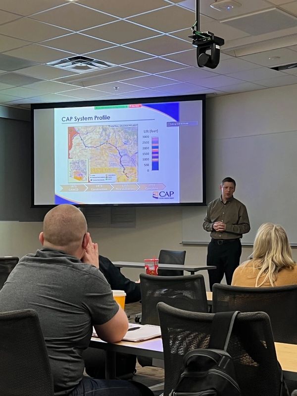Central Arizona Project teamed up to provide an O&M, Water Operations & Maintenance presentation. Marcus Shapiro is the Water Systems Supervisor and Marcus Corley is the Area Maintenance Planning Supervisor.